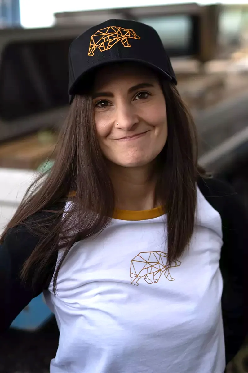 Dieses Produkt ist ein einfarbiges Basecap. Die Stirn der Cap wird durch einen großflächigen, bronzefarbenen Bären in Polygonoptik geziert. Rechts neben der Größenverstellung befindet sich ein weiterer kleinerer Stick mit FORSBERG Bär- und Schriftzug.